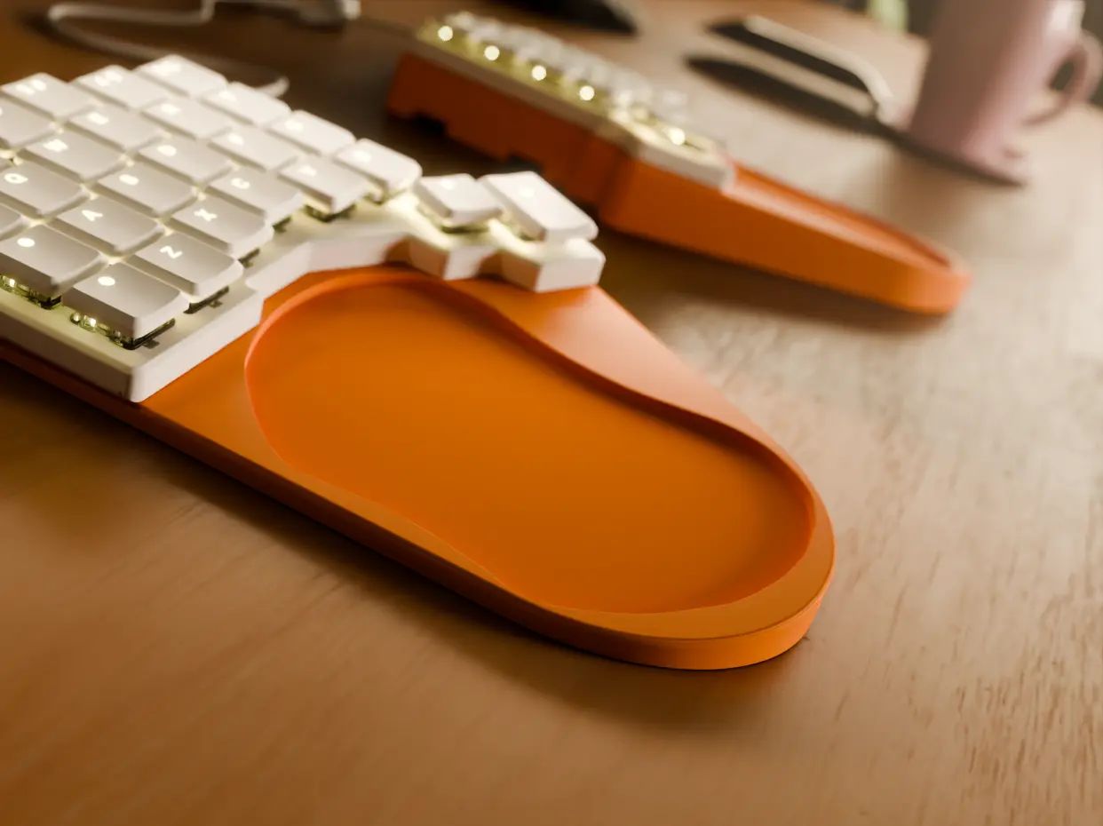 However, I missed the tenting and palm rests of the Moonlander, so I designed and printed something that suits me pretty good! I couldn't find something similar online, but I didn't look too much as I was kinda eager to design my own.
