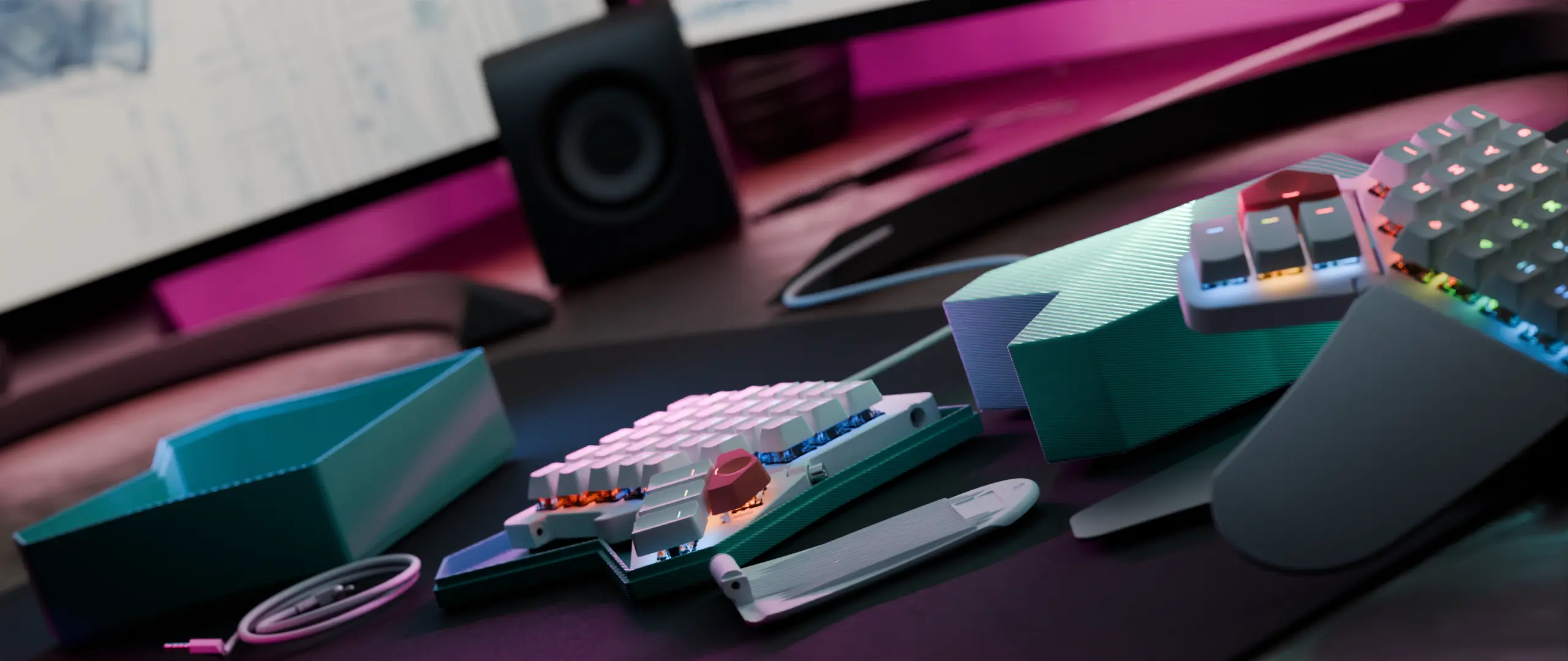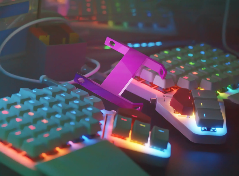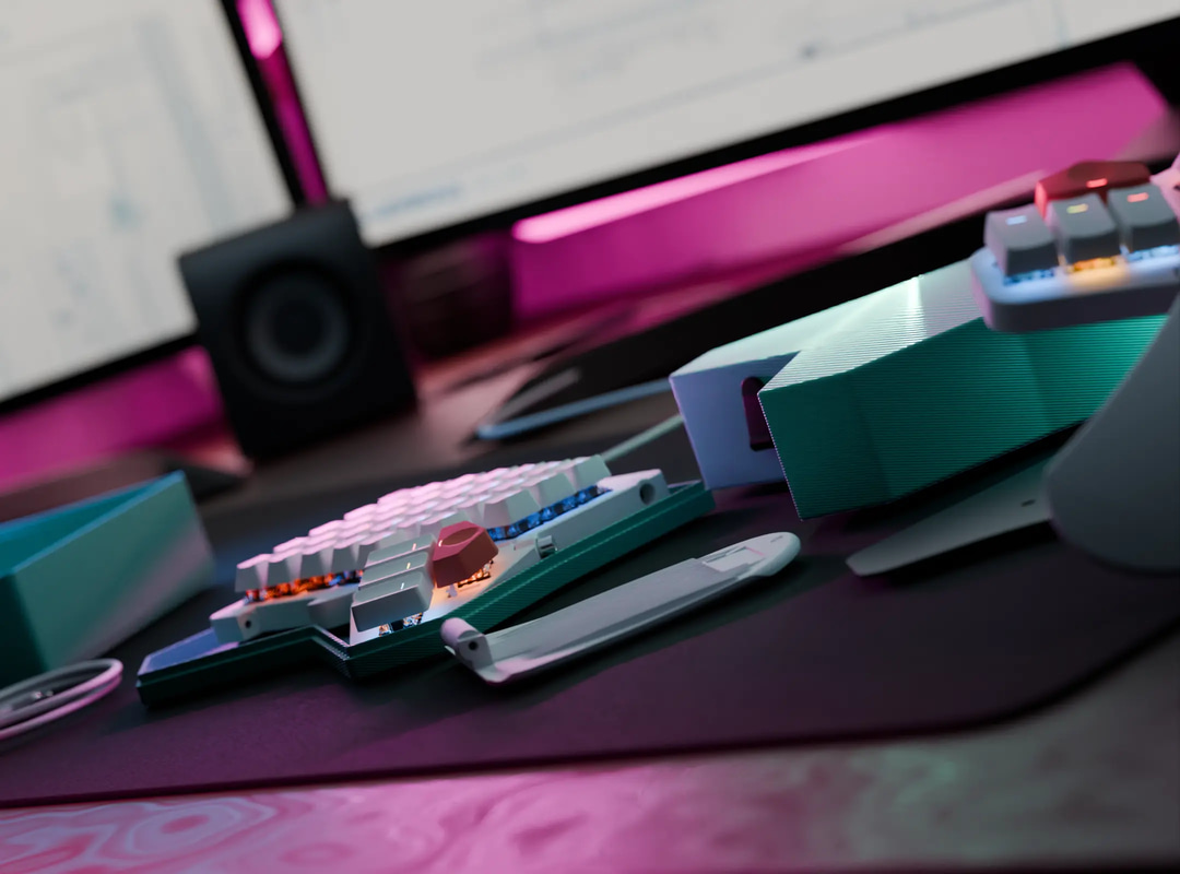While the Moonlander’s open-source firmware lets you customize anything about how the board works internally, we didn’t want to stop there. The Moonlander is made to be modded: With its modular design and built-in reinforced mounting points, you can design and print your own accessories and add-ons. Here are some cool ones we’ve found.
