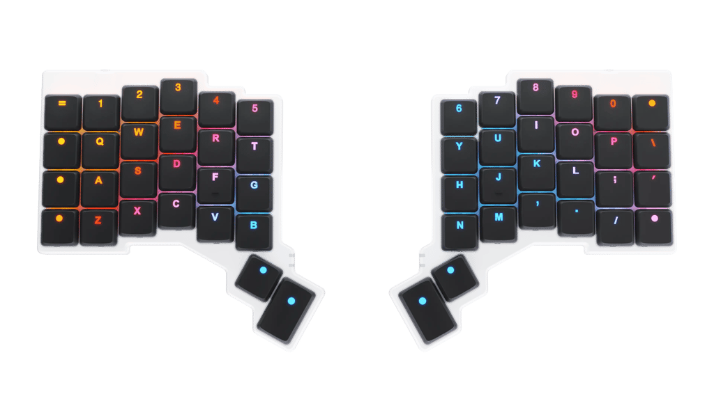 And if you decide Colemak is the way to go, you’re covered: Your Voyager comes with Colemak homing bumps in the box.
